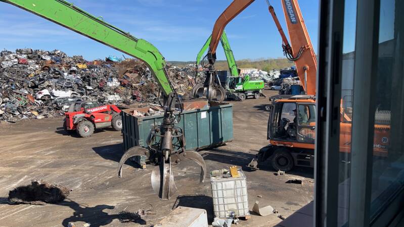 Notre presse qui compacte les véhicules avant de partir aux recyclages